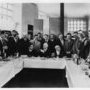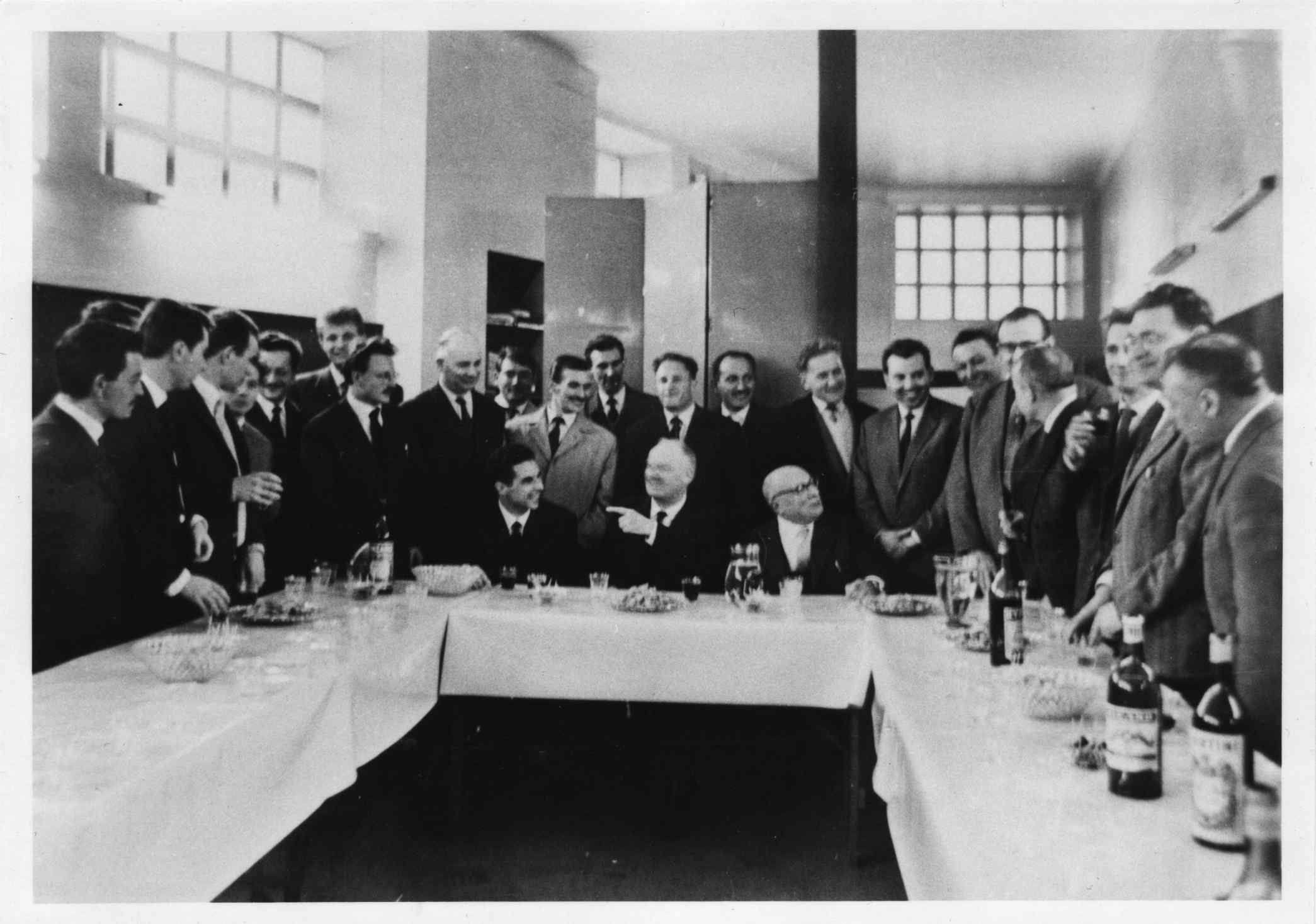 Les soldats du refus reçus et fêtés par la direction du Parti Communiste au siège du Comité Central le 31 mars 1962. On reconnait Maurice Thorez, Waldeck Rochet, Jacques Duclos, Etienne Fajon, Raymond Guyot, Paul Laurent,